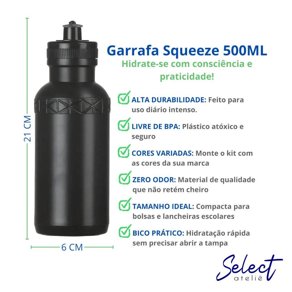 O Squeeze de 500ml é a escolha mais inteligente para quem busca um brinde de baixo custo e alta utilidade.